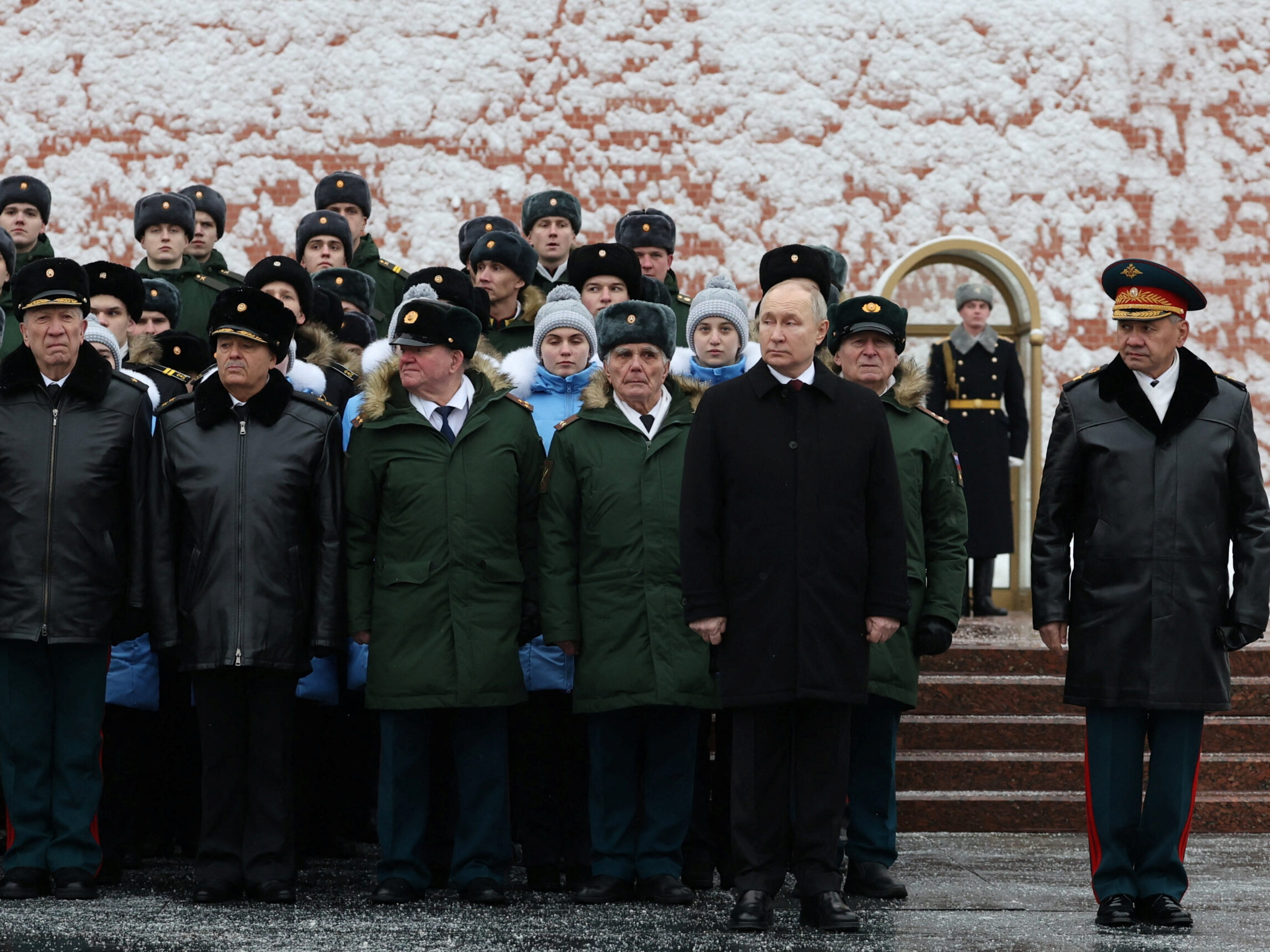 Image: Russia's President Vladimir Putin and Defense Minister Sergei Shoigu watch honor guards passing by after a wreath-laying ceremony marking Defender of the Fatherland Day in Moscow, February 23, 2024. Sputnik/Alexander Kazakov/Pool via REUTERS