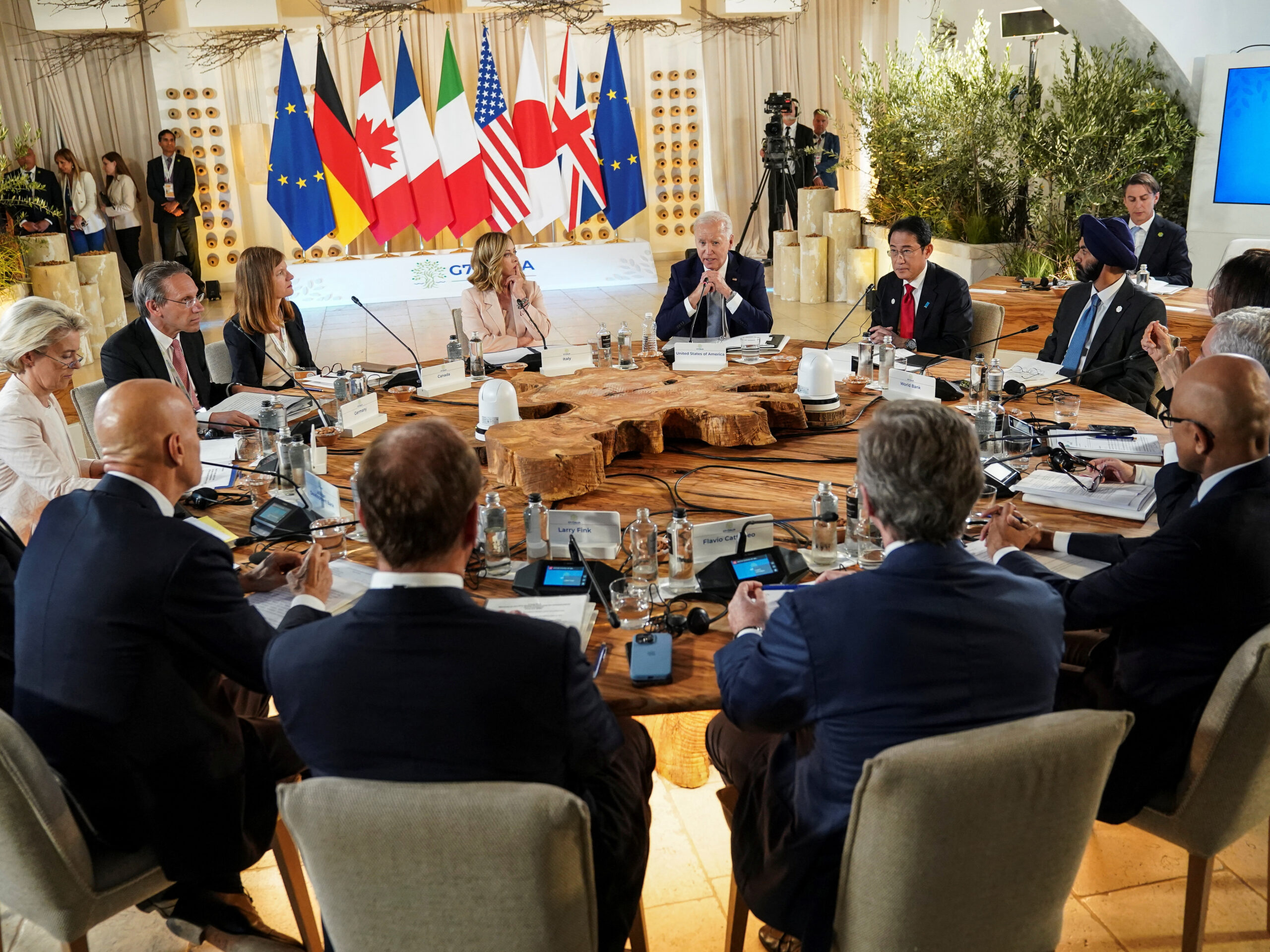 Image: Akinwumi Adesina, President of the African Development Bank, Italian Prime Minister Giorgia Meloni, Japanese Prime Minister Fumio Kishida, U.S. President Joe Biden, European Commission President Ursula von der Leyen and World Bank President Ajay Banga attend a Partnership for Global Infrastructure and Investment (PGII) event, on the first day of the G7 summit, in Savelletri, Italy, June 13, 2024. REUTERS/Kevin Lamarque