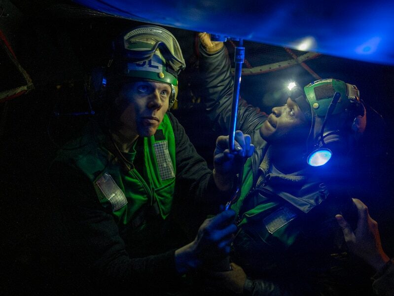Image: US Navy personnel aboard the USS Gerald R. Ford work on an E/A-18G Growler aircraft as part of Operation Epic Fury. March 3, 2026. Source: NAVY, VIRIN: 260303-N-LS368-1061M.