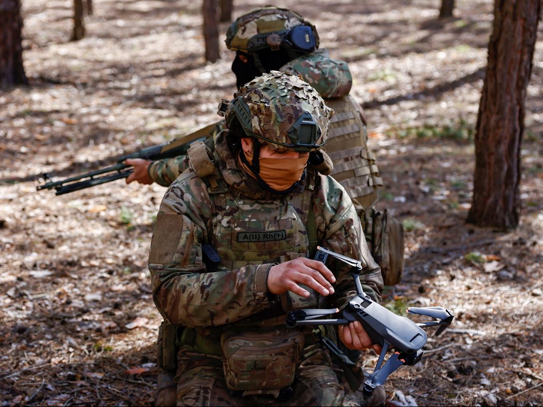 Image: A Ukrainian serviceman, call sign "Black", 34, of the 110th Battalion, handles a drone during an exercise, as Russia's attack on Ukraine continues, in an undisclosed location near the frontline town of Kreminna, Ukraine March 14, 2023. REUTERS/Violeta Santos Moura