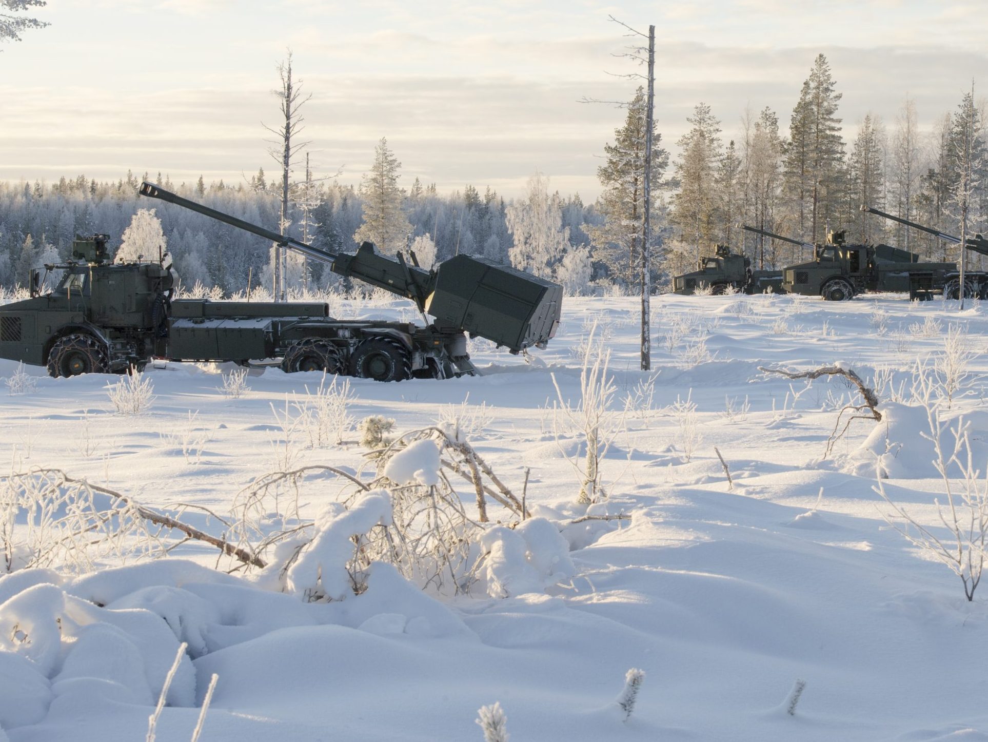 Image: Archer-pjäser står grupperade på en höjd på BODENS Skjutfält.