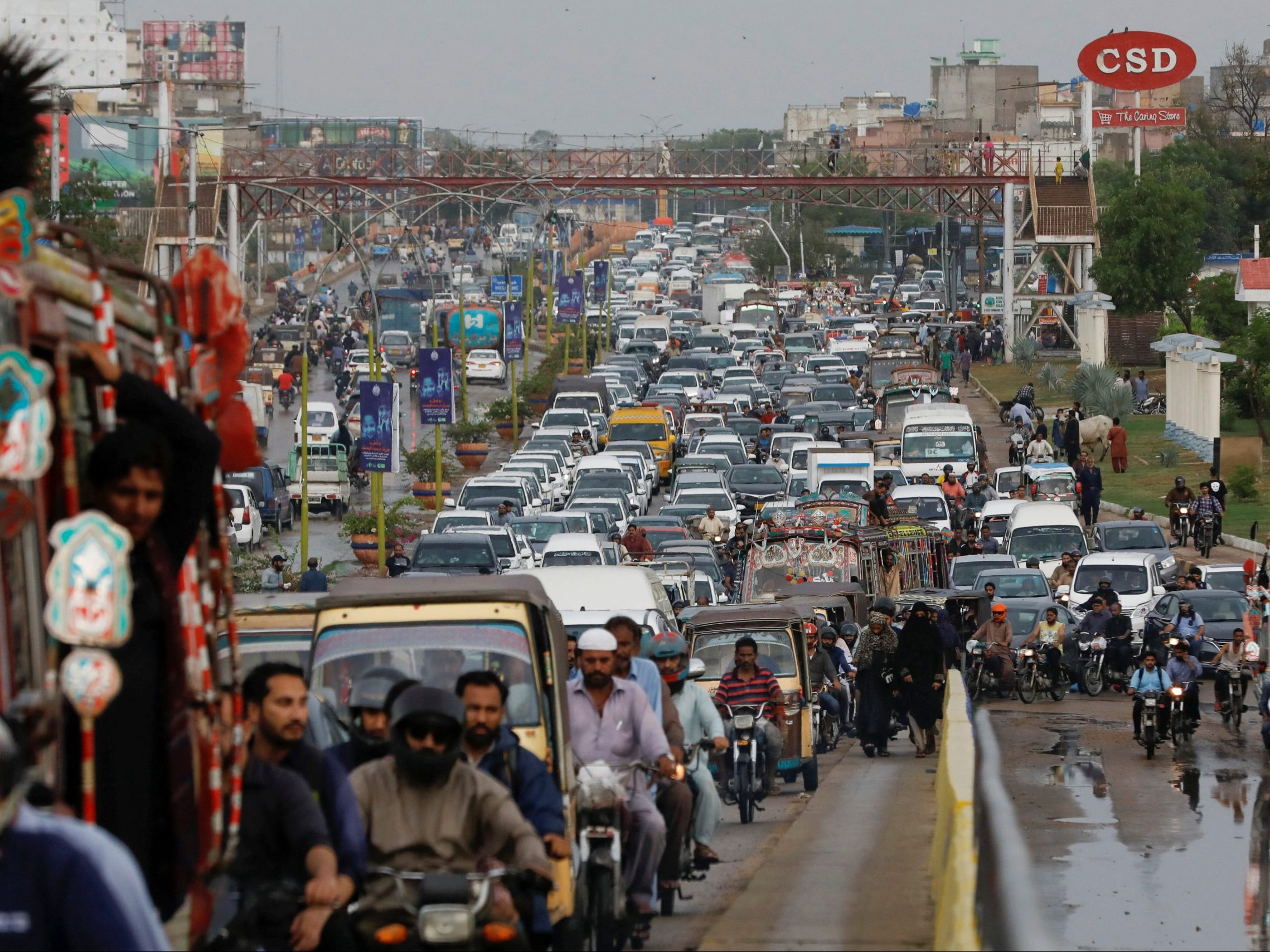Image: A general view shows road traffic during the monsoon rain in Karachi, Pakistan July 5, 2022. REUTERS/Akhtar Soomro