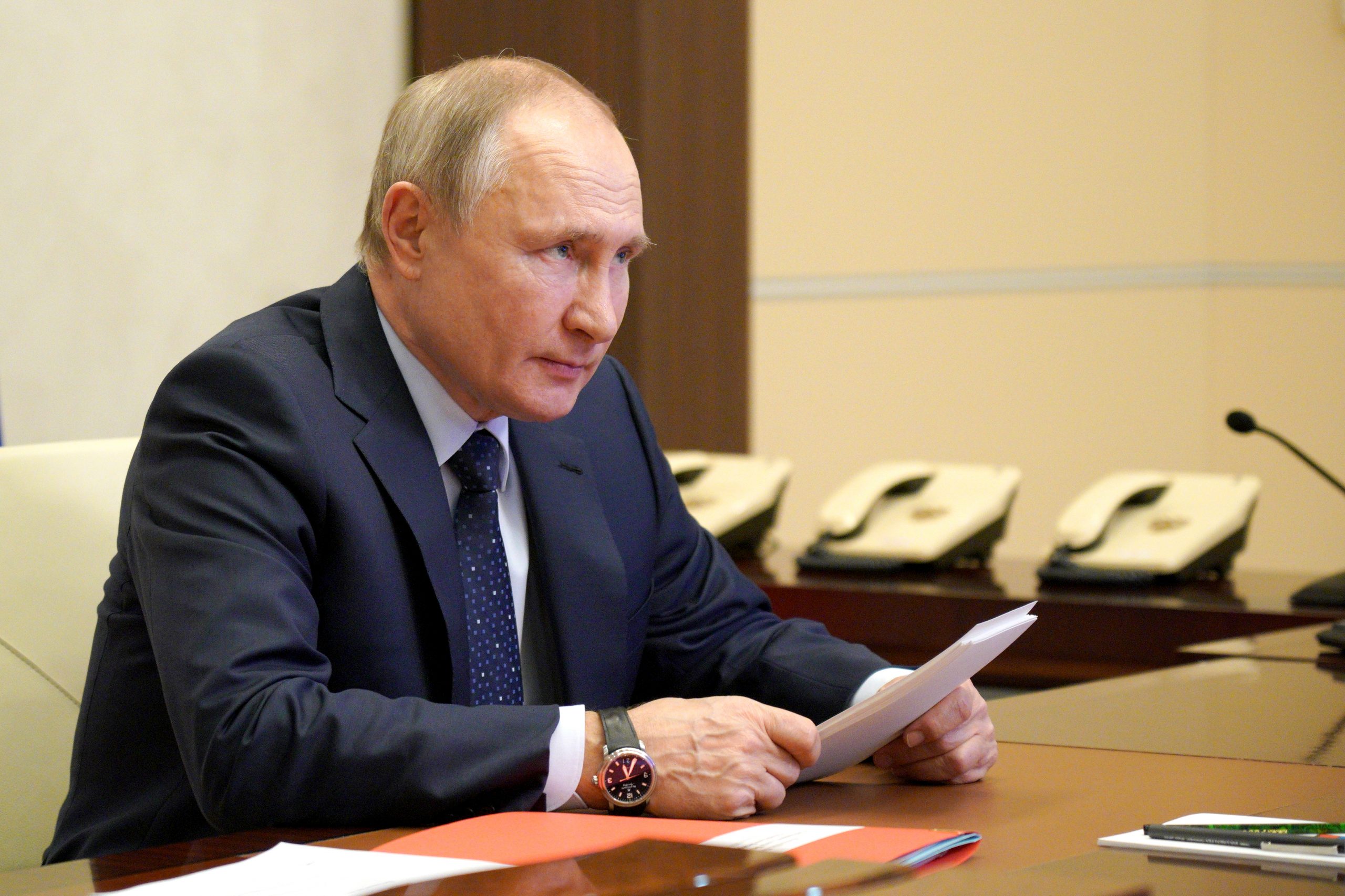 Image: MOSCOW REGION, RUSSIA - MARCH 26, 2021: Russia's President Vladimir Putin holds a meeting of the Russian Security Councul via video link from the Novo-Ogaryovo residence. Alexei Druzhinin/Russian Presidential Press and Information Office/TASS.No use Russia.