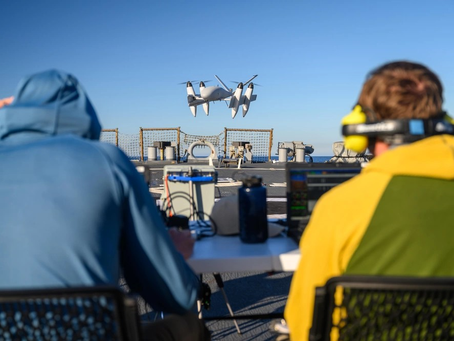 Image: A PteroDynamics X-P4 Unmanned Aerial System prepares to land on the flight deck of the Arleigh Burke-class guided-missile destroyer USS Curtis Wilbur (DDG 54) on June 19, 2024. DVIDS/Petty Officer 1st Class Jesse Monford. The appearance of US Department of Defense (DoD) visual information does not imply or constitute DoD endorsement.