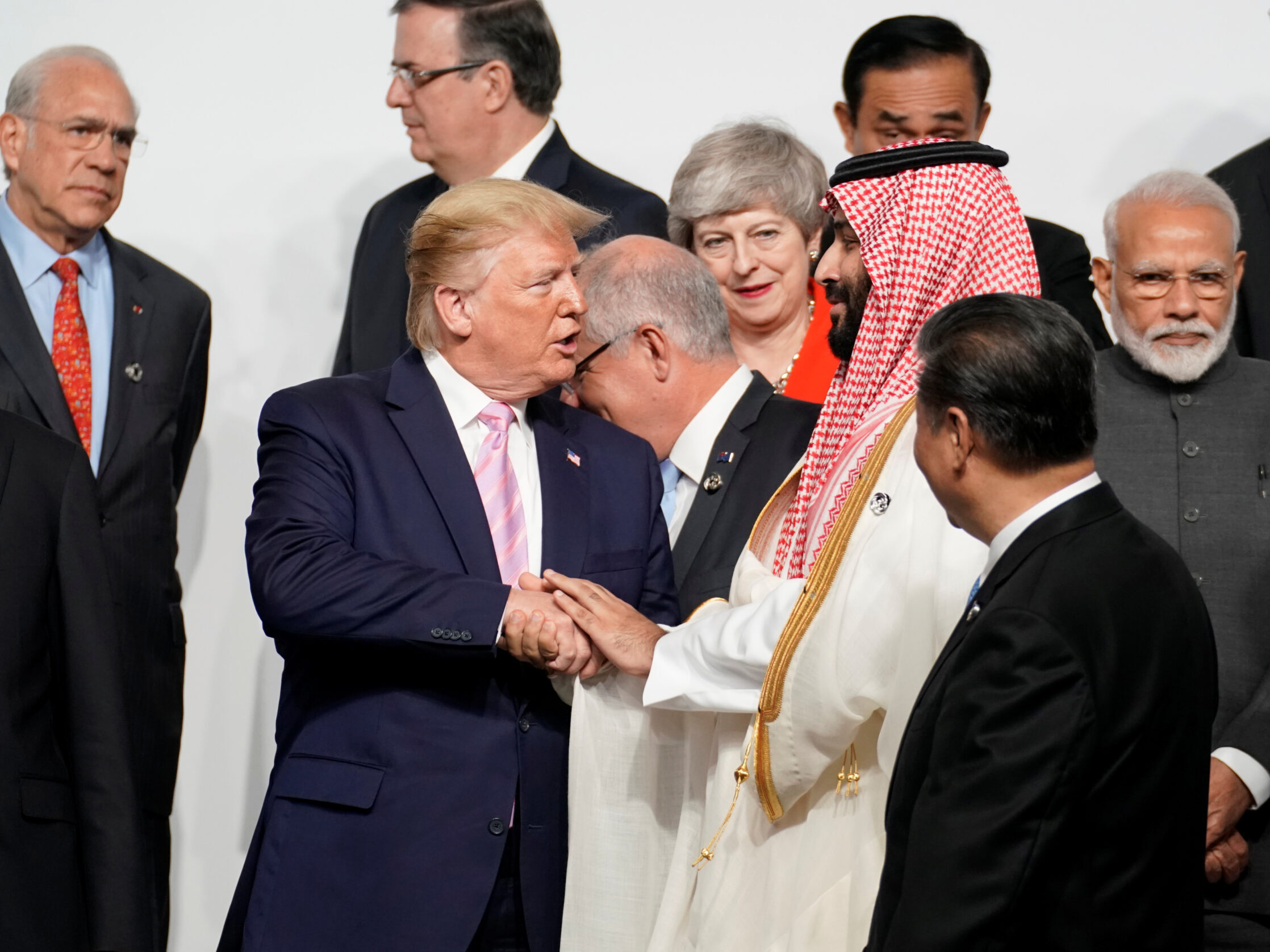 Image: Saudi Arabia's Crown Prince Mohammed bin Salman shakes hands with U.S. President Donald Trump during a family photo session at the G20 leaders summit in Osaka, Japan, June 28, 2019. REUTERS/Kevin Lamarque