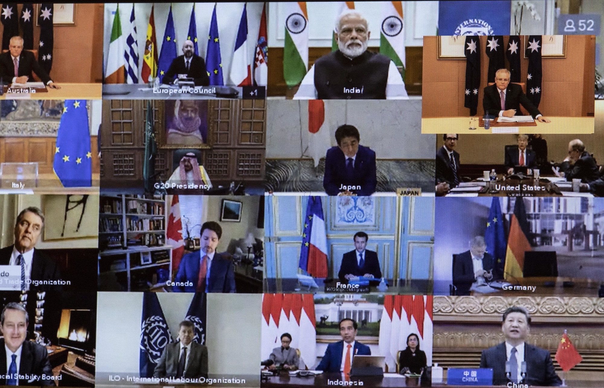 Image: Image: G20 virtual Leaders Summit to discuss the coronavirus crisis, March 26, 2020. (AAP Image/Gary Ramage)