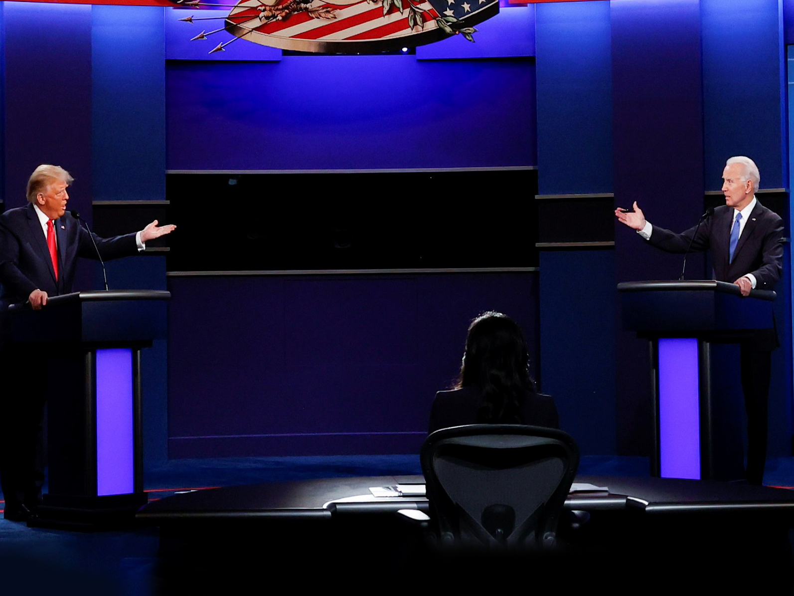 Image: U.S. President Donald Trump and Democratic presidential nominee Joe Biden participate in their second 2020 presidential campaign debate at Belmont University in Nashville, Tennessee, U.S., October 22, 2020. REUTERS/Mike Segar
