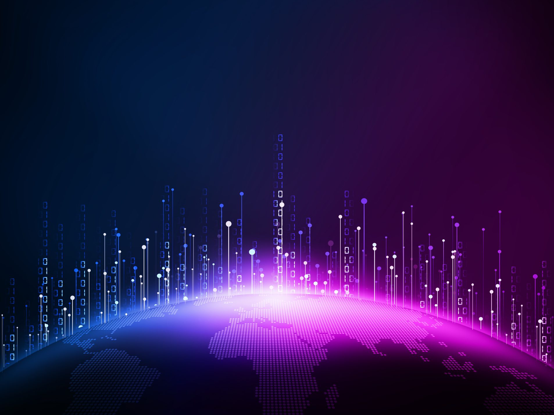 Image: Digital earth, dotted line, 01 binary data combination, meaning globalization, internationalization, Internet big data technology background.