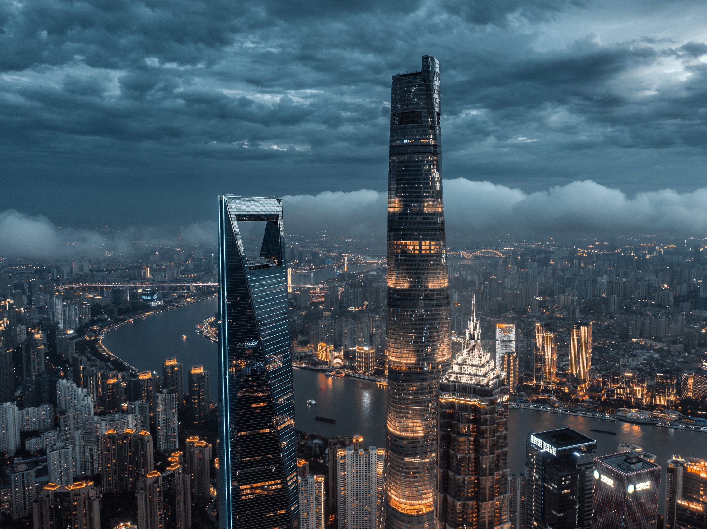 Image: Lujiazui is located in the Pudong New District on the eastern bank of Huangpu River. It forms a peninsula on a bend of the Huangpu River, which turns from flowing north to flowing east. The importance of Lujiazui stems from the fact that it lies directly across the river from the Bund, the old financial and business district of Shanghai, and just south of the confluence of the Suzhou Creek with the Huangpu River. Until the 1980s, Lujiazui was a relatively low-built area, featuring residential houses, warehouses, and factories. Following the allocation of Lujiazui as a special investment zone in 1992, the development of Lujiazui's skyline begun. This was largely driven by Chinese state owned enterprises investing and developing the property within the area, with the inaugural landmark, the Oriental Pearl Tower, being completed in 1994.