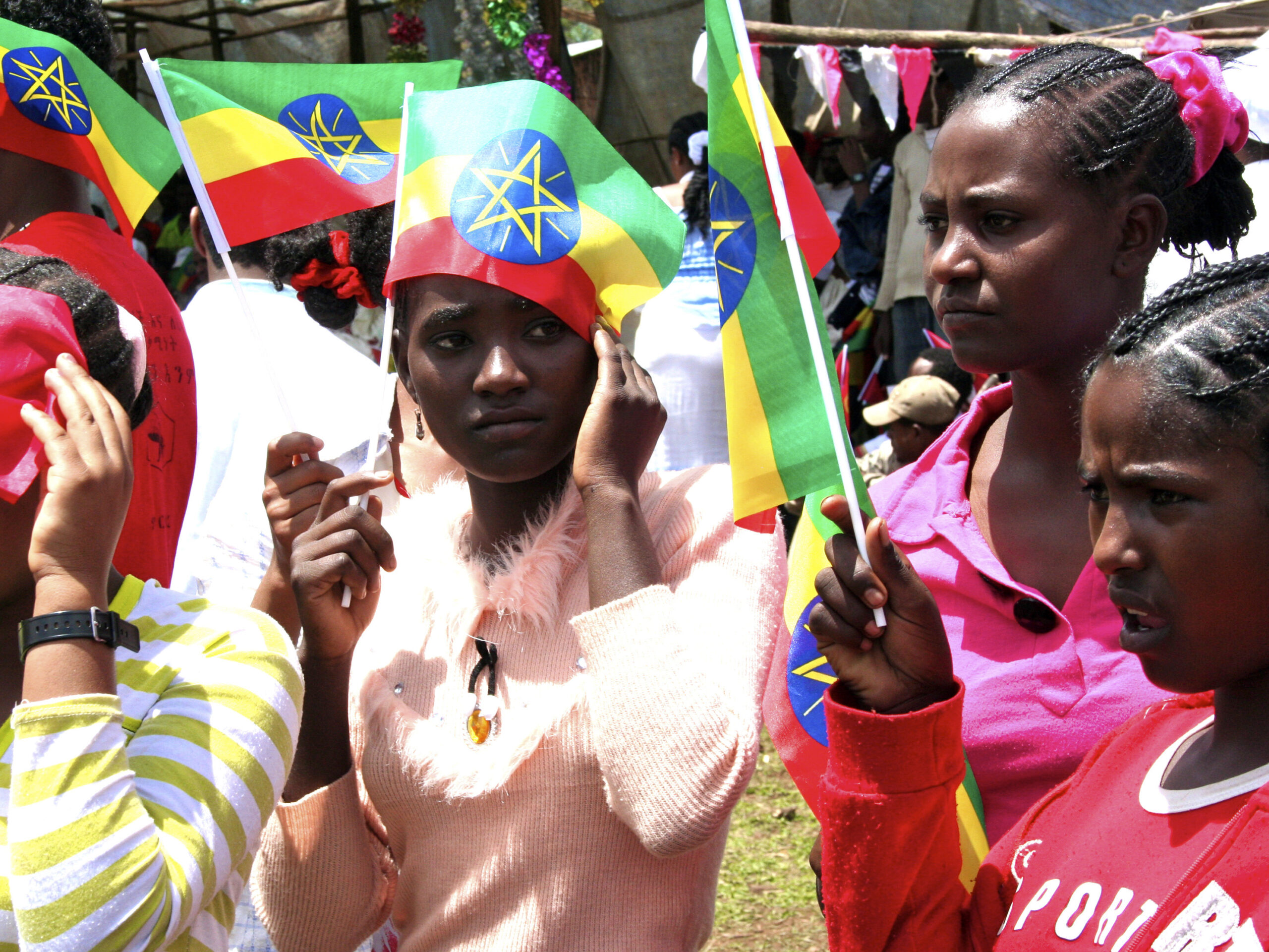 Image: Ethiopian girls carry their national flags during a rally by the ruling party in the Oromia region, May 16, 2010. TREUTERS/Barry Malone