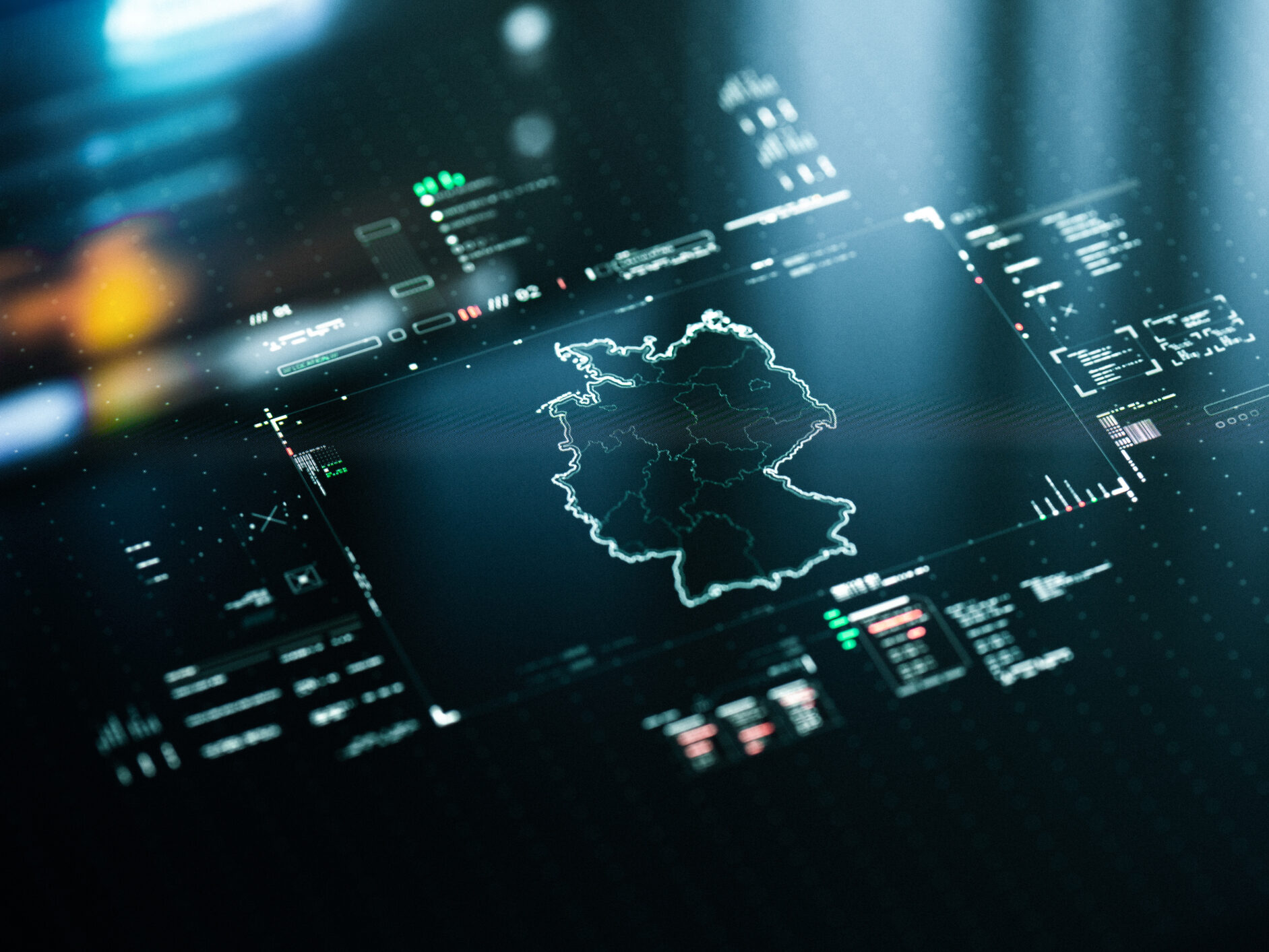 Image: Outline map of Germany infographics with data charts representing communication, internet and technology.