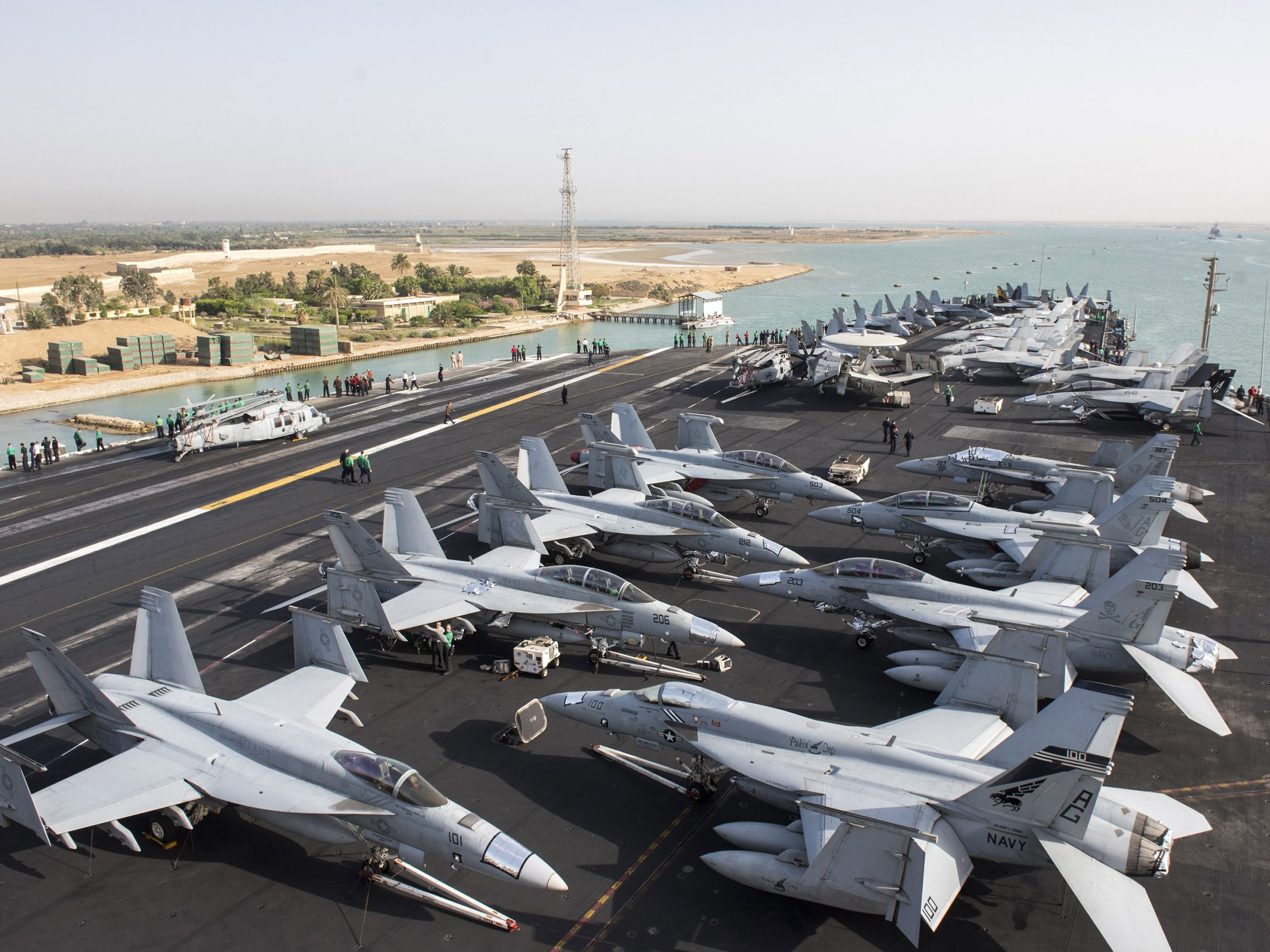 Image: The US Navy aircraft carrier USS Harry S. Truman transits the Suez Canal, Egypt towards the Mediterranean Sea in a photo released by the US Navy June 2, 2016. U.S. fighter jets on Friday launched strikes against Islamic State from the USS Harry S. Truman aircraft carrier, the U.S. Navy said, marking the first time a U.S. aircraft carrier targeted areas in the Middle East from the Mediterranean since the Iraq War began in 2003. U.S. Navy/Mass Communication Specialist 3rd Class Anthony Flynn/Handout via REUTERS ATTENTION EDITORS - THIS PICTURE WAS PROVIDED BY A THIRD PARTY. FOR EDITORIAL USE ONLY