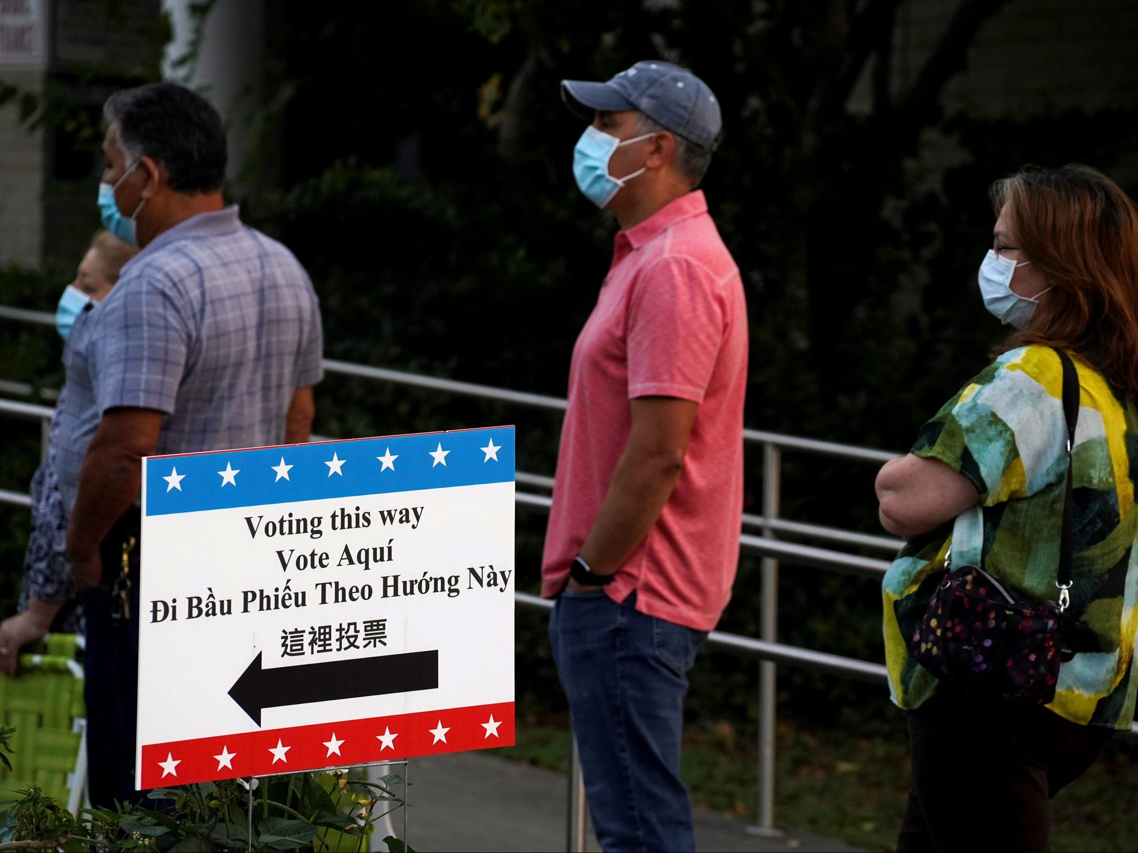 Image: FILE PHOTO: FILE PHOTO: People wait in line to cast their ballots for the upcoming presidential election as early voting begins in Houston, Texas, U.S., October 13, 2020. REUTERS/Go Nakamura/File Photo/File Photo