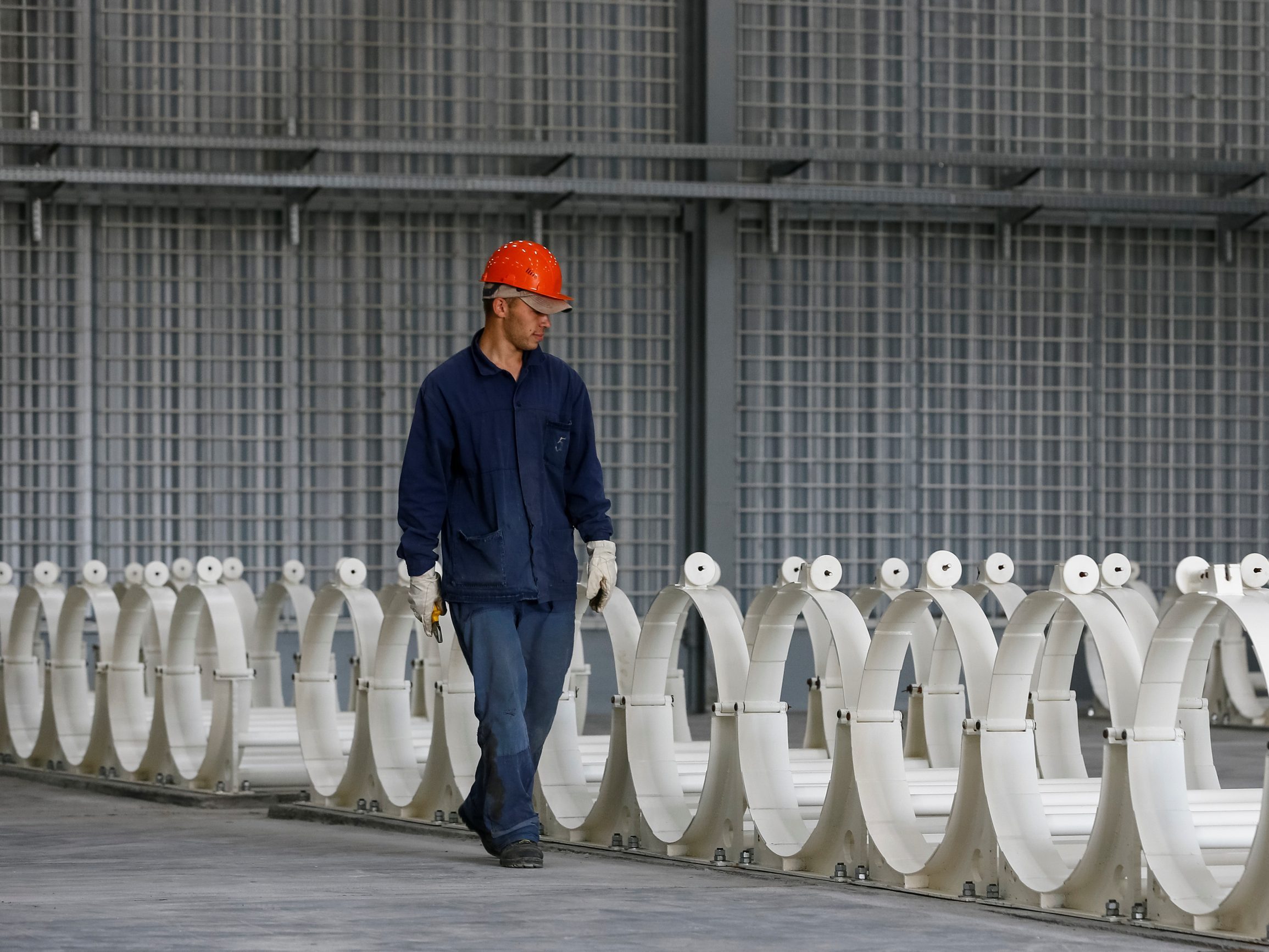 Image: A worker makes a final adjustment of mounts for containers with uranium hexafluoride salt, raw material for nuclear reactors, at the IAEA Low Enriched Uranium (LEU) Bank, at the Ulba Metallurgical Plant in the northeastern industrial city of Oskemen, Kazakhstan May 26, 2017. Picture taken May 26, 2017. REUTERS/Shamil Zhumatov