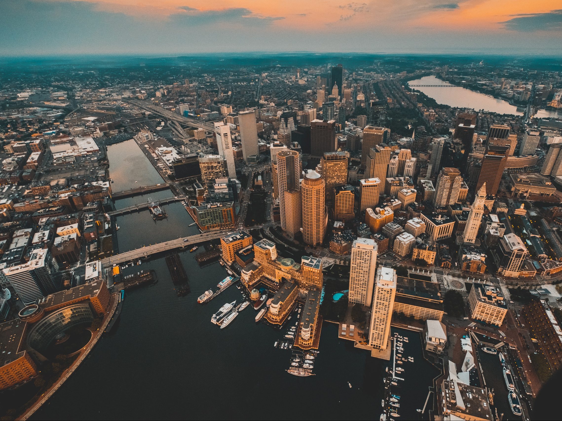 Image: Boston from a bird's eye view. (Osman Rana, Unsplash, Unsplash License) https://unsplash.com/license