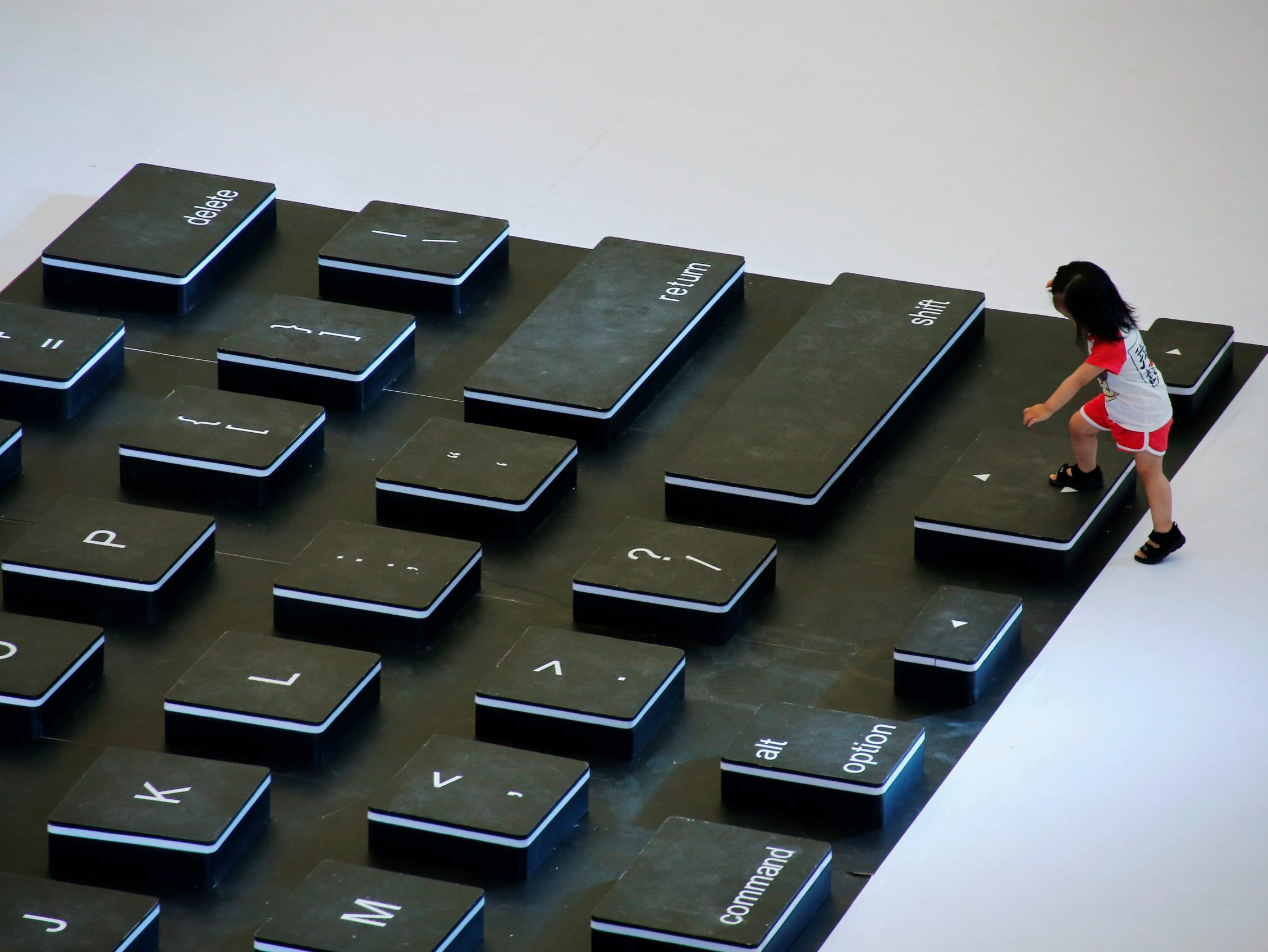 Image: A child climbs onto a giant mockup laptop keyboard during a promotion event at a shopping centre in Beijing, China July 28, 2016. REUTERS/Thomas Peter TPX IMAGES OF THE DAY
