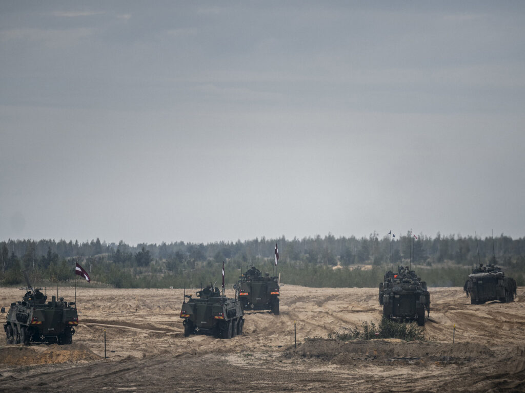 Image: Nato Secretary General Mark Rutte (3rd from right) talks to Latvian President Edgars Rinkevics (M) and Latvian Defense Minister Andris Spruds (4th from right) with soldiers and looks at their military equipment. They visited a maneuver of the multinational NATO brigade stationed in Latvia, which is currently being formed and trained together at full strength for the first time. Reuters