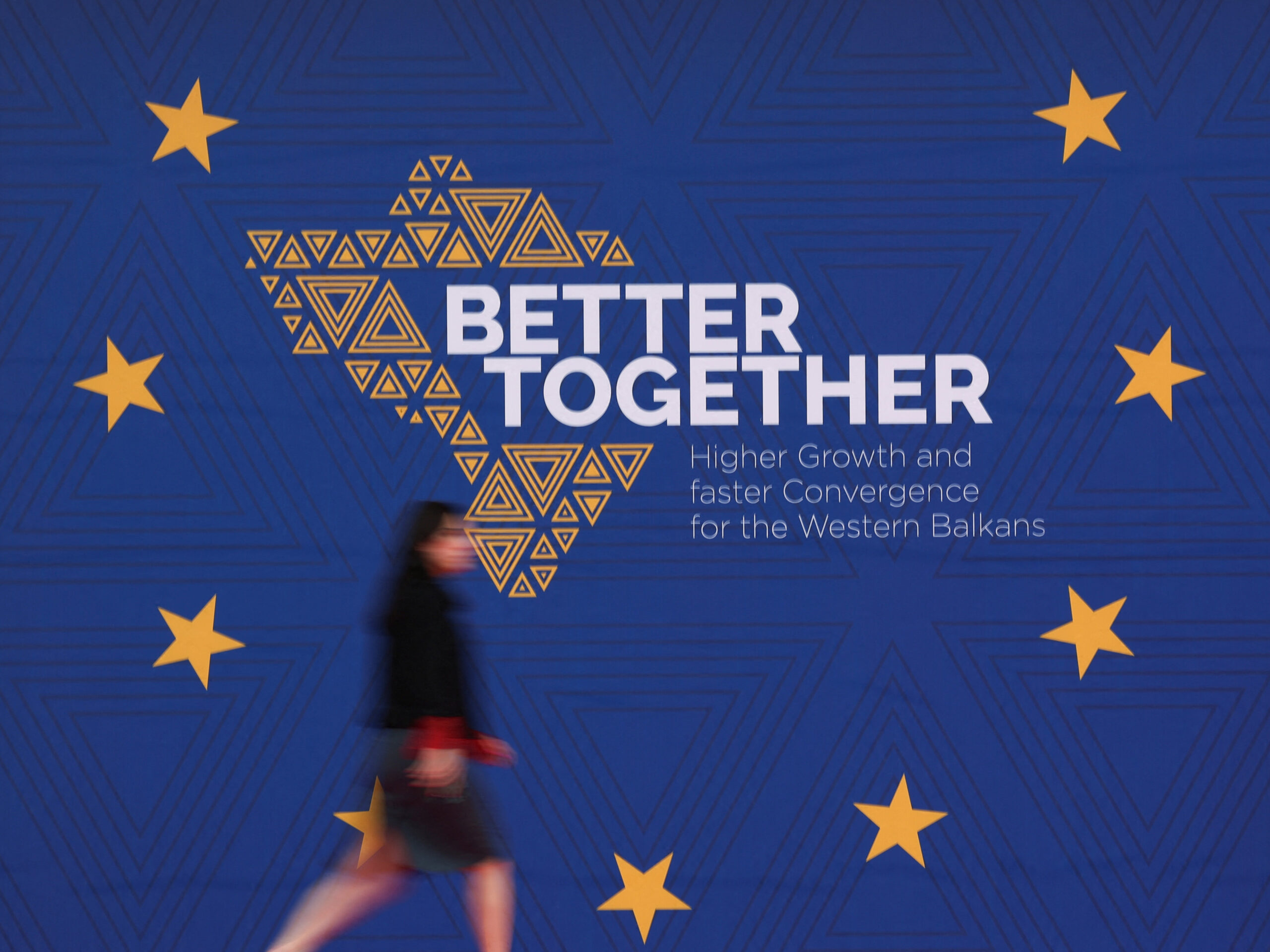 Image: An attendee walks at the venue on the day of the EU-Western Balkans summit in Tirana, Albania, February 29, 2024. REUTERS/Florion Goga.