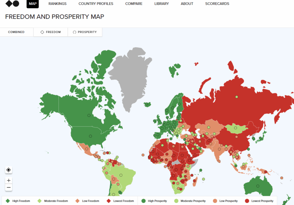 The Freedom and Prosperity Indexes rank 164 countries around the world according to their levels of freedom and prosperity. Use our award-winning site to explore twenty-nine years of data, compare countries and regions, and examine the sub-indexes and indicators that comprise our indexes.